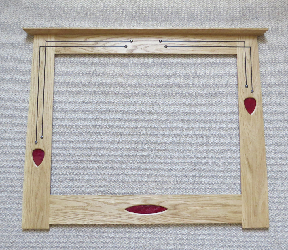 L7. Landscape. Red fused glass with ebony inlay and copper studs
